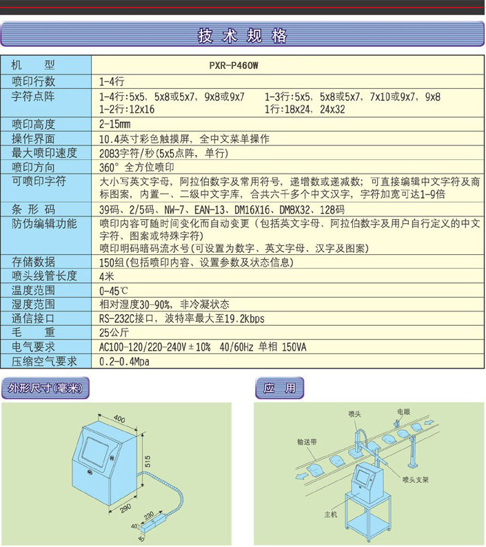 PXR-P460W白墨水喷码机