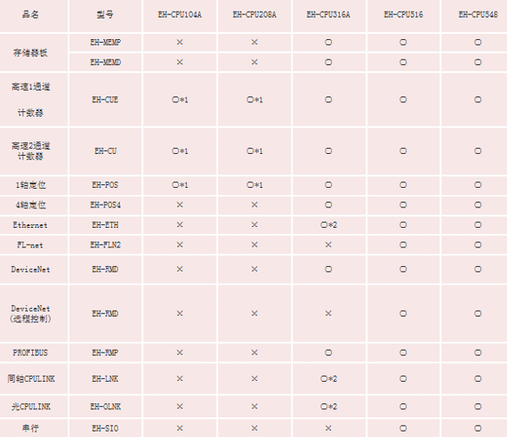 新CPU支持的高性能模块 (〇:支持、×:未支持)